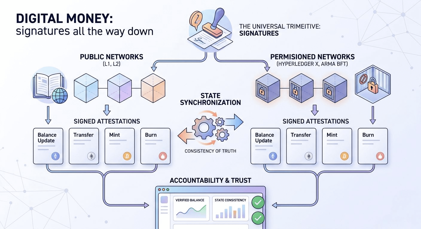 At the end of the day, money on-chain is just signed claims. That’s it. Who owns what. Who sent what.... What’s valid..... What isn’t..... Strip away the branding, the hype, the token logos it’s signatures all the way down.