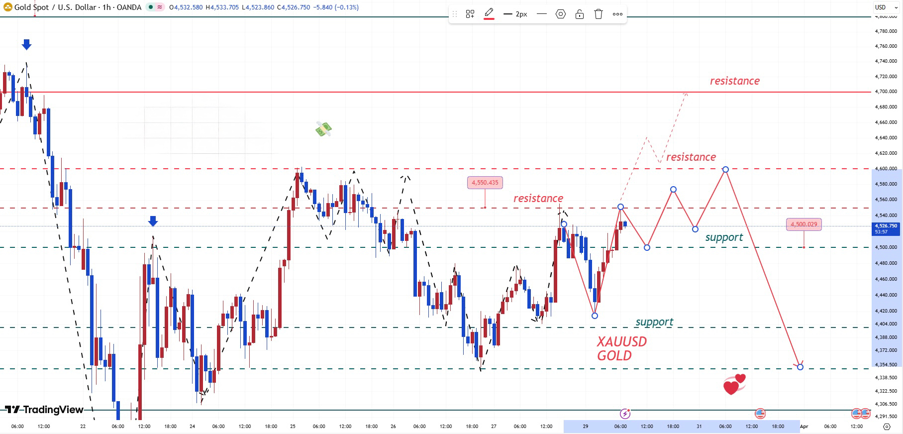 However, as mentioned before, the current rebound appears to be a correction, and continued economic pressure could still push gold prices back below $4100 (the March low).