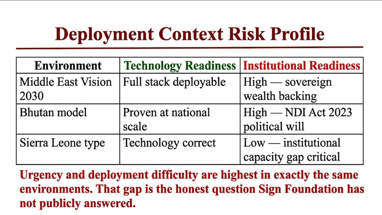 2 outcomes same architecture completely different risk profiles. Sign Foundation has not publicly resolved which deployment context it is optimising for first.
