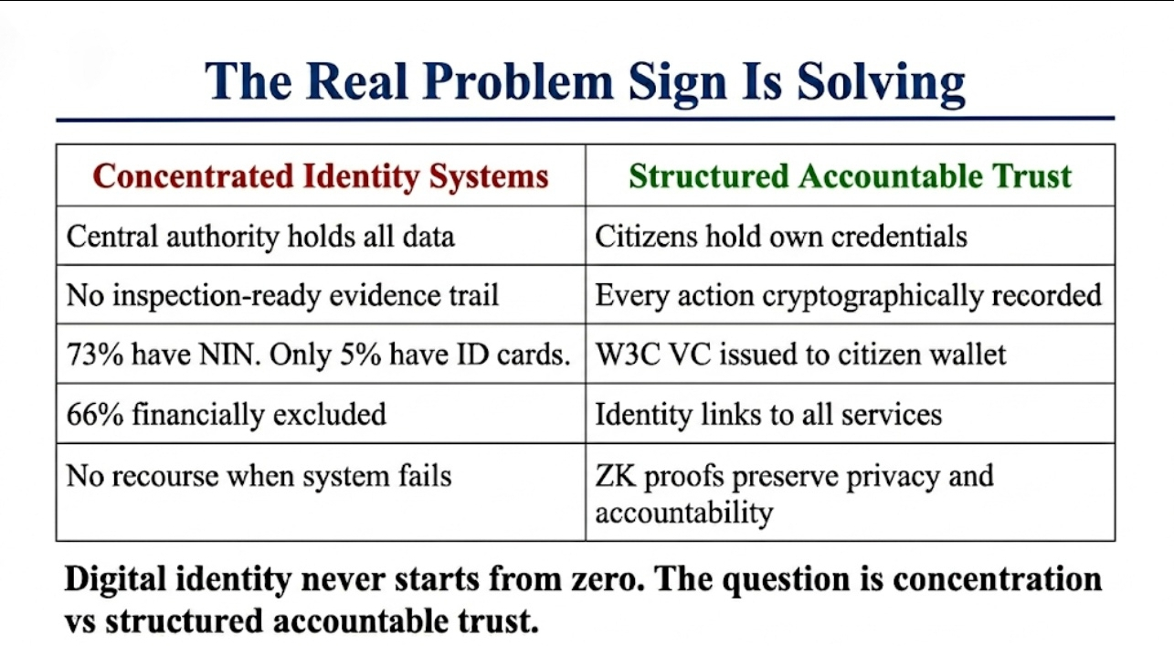 if Sign Foundation deploys in environments where accountability failure is most severe like Sierra Leone where 66% financial exclusion exists because concentrated identity infrastructure failed the populations it was supposed to serve the technology is correct but institutional capacity to operate it without creating new failure modes is exactly what is missing. the urgency is maximum. the deployment difficulty is also maximum.