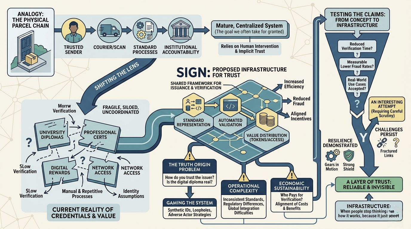 In the end, I don’t see SIGN as a finished solution—I see it as a pressure test for an idea that sounds simple but is deeply hard to execute. If it works, it won’t be because the concept was elegant, but because it survived contact with reality.