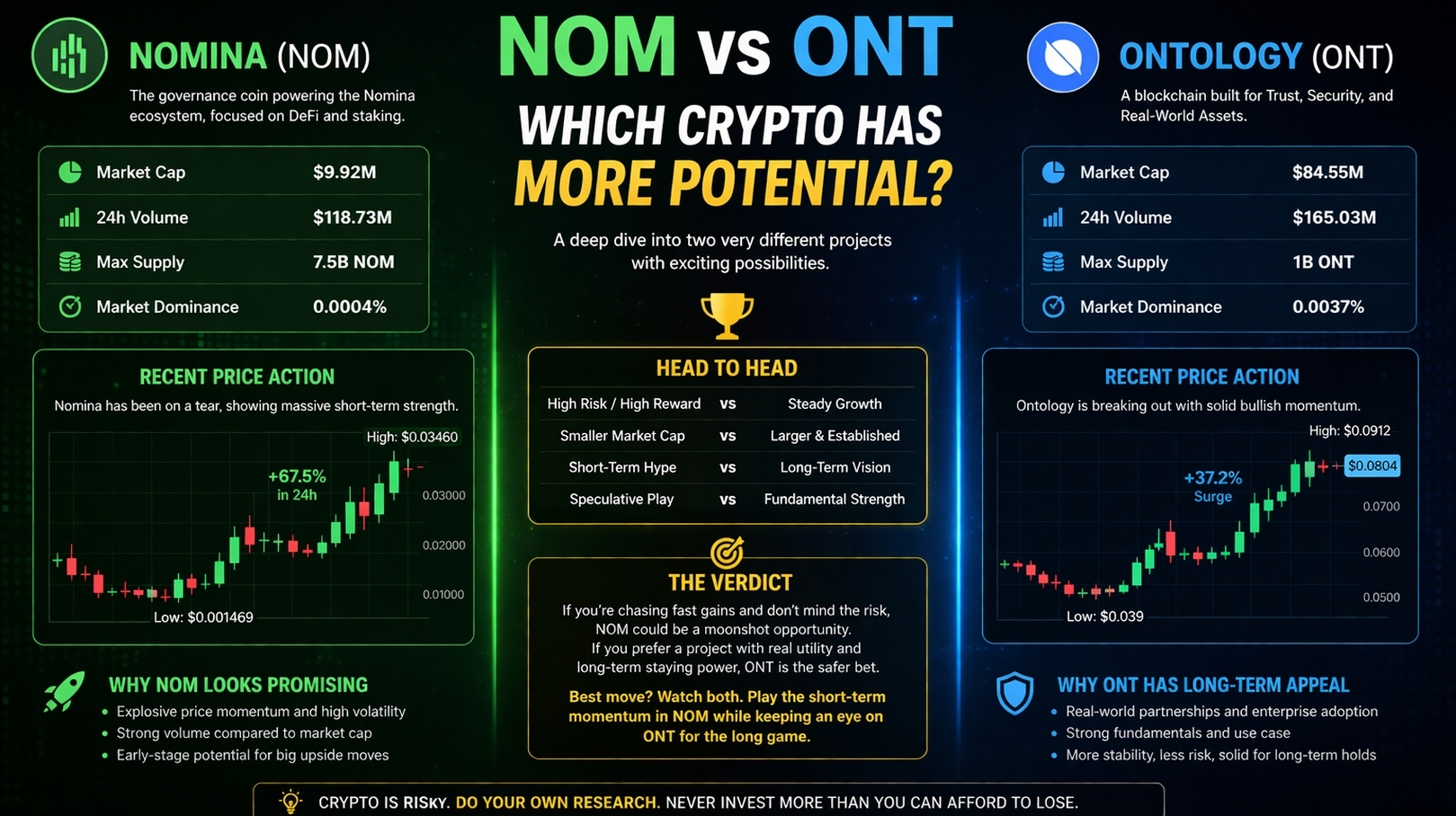 In my personal view, I am leaning towards a cautious long. I want to see if these pullbacks hold support and if the next green candle shows continuation with strong volume. I am watching both NOM and ONT closely.