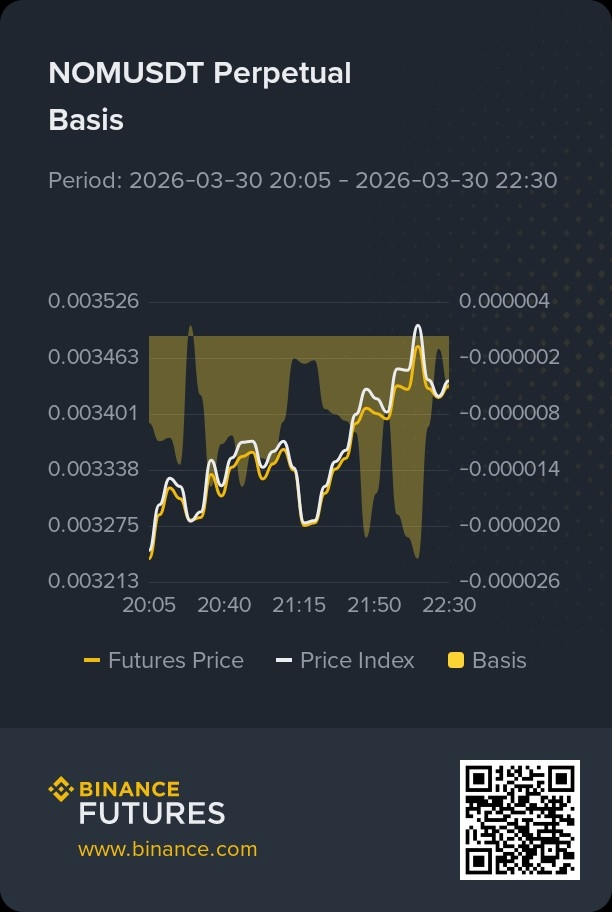 NOM just shot up around 43 percent in a very short time. The green candles are huge and the volume is strong. This is not a small pump, people are actively trading and putting real money behind these moves. Looking at the futures, they are slightly above the spot price which shows traders are confident, but the small pullbacks in the chart also tell me some are taking profits. Open interest is climbing steadily which means the bigger players are entering the market and positioning themselves.