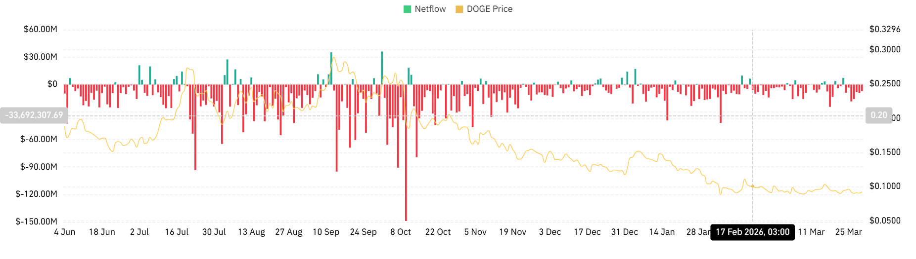 更关键的是资金流向。根据CoinGlass数据,DOGE现货市场虽然整体呈现净流出(约-1425万美元),但这背后其实隐藏着一个偏利好的信号——提款量大于存款量。