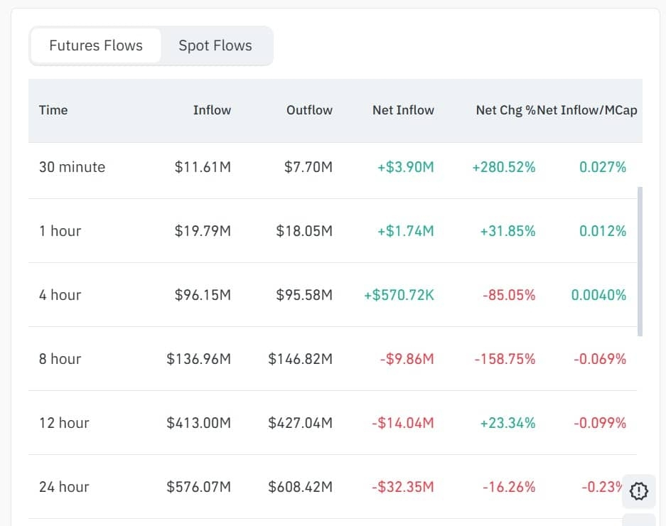 同时,期货市场整体资金流出规模超过6亿美元,说明不少资金选择离场观望,而不是继续参与博弈。