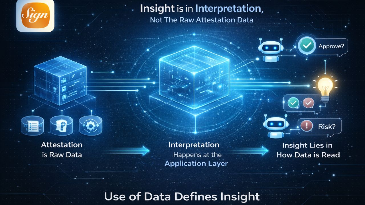 Một attestation có thể trông rất “giàu thông tin”, nhưng càng nhìn vào cách các hệ thống thực sự dùng nó, mình càng thấy việc nó có mang insight hay không phụ thuộc hoàn toàn vào cách nó được đọc. Hai hệ thống có thể query cùng một attestation, một bên coi đó là tín hiệu đủ để approve, bên còn lại coi đó là rủi ro cần chặn, và cả hai đều đúng vì protocol không ép một cách diễn giải duy nhất. Insight vì vậy không nằm trong data, mà nằm trong interpretation.