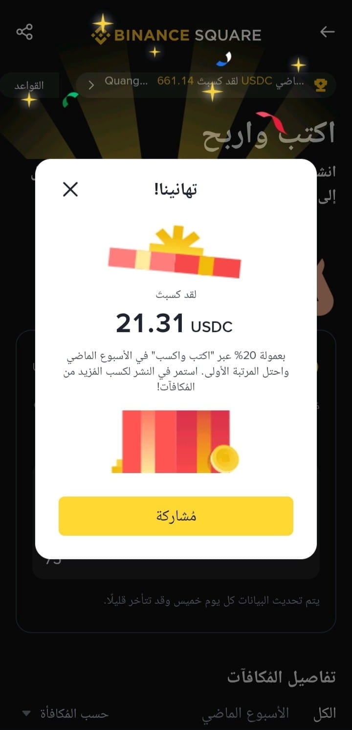 💸 كسبت 21.31 USDC من خلال برنامج "اكتب واكسب"! مجانًا، شكرًا بينانس