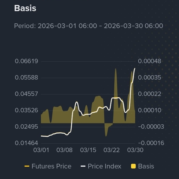 The basis is rising overall, even with the recent drop. That means futures traders are still willing to price slightly above the index. This usually reflects underlying bullish expectations, even if short-term price looks weak.