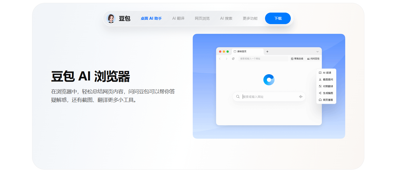 不管是苹果笔记本还是Windows台式电脑,都能安装豆包浏览器,我最喜欢的就是,右上角有几个超实用的功能,平时经常用到: