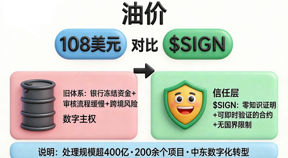 晚上好,家人们,你们打我看我看而已我最近看油价一路冲到108美元。朋友圈里那些宏观大佬全在慌。其实大家慌的不只是油钱贵,而是地缘局势让老信任系统快要崩了。#Sign地缘政治基建