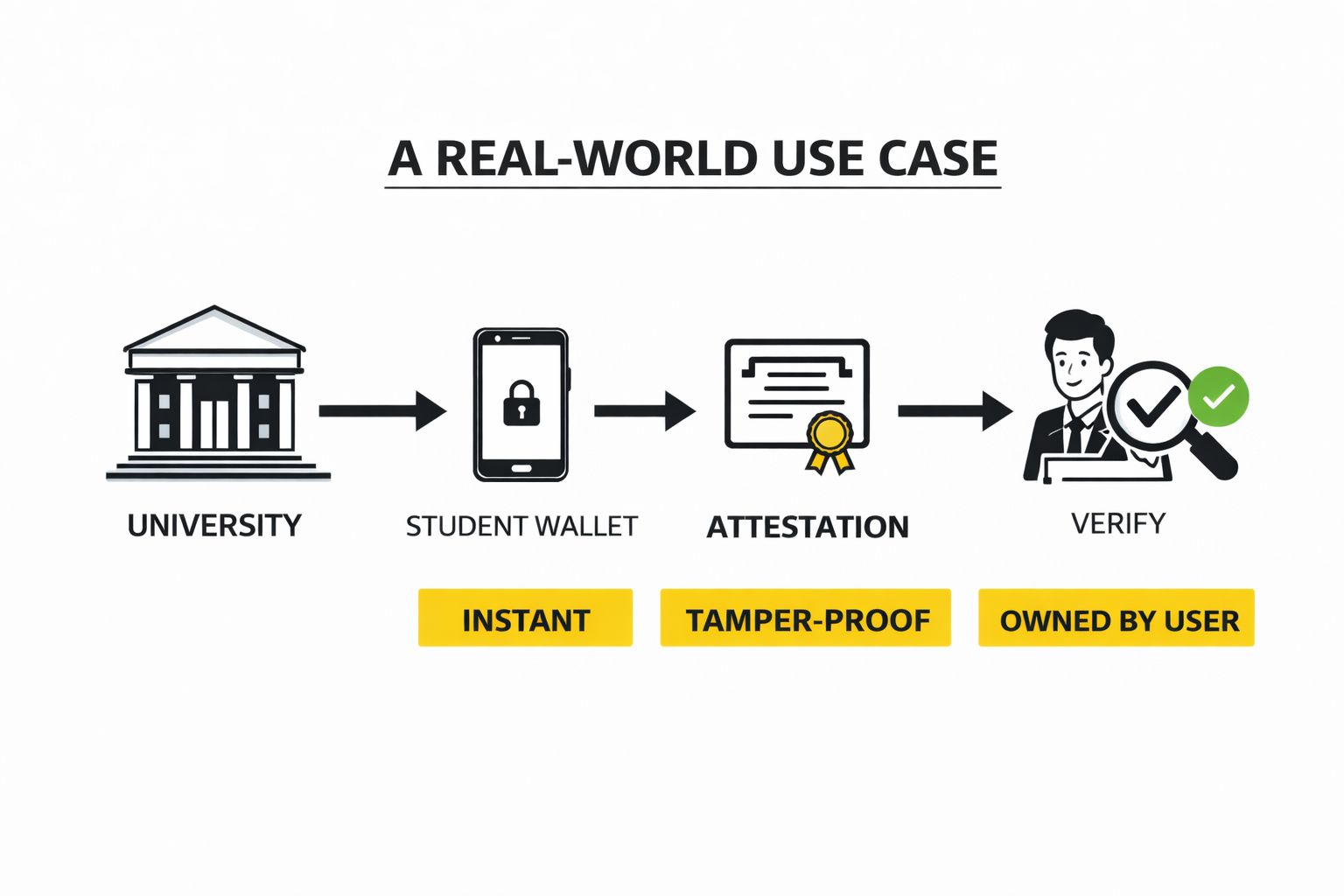 Instead of maintaining massive databases, universities issue attestations directly to students. These records are: