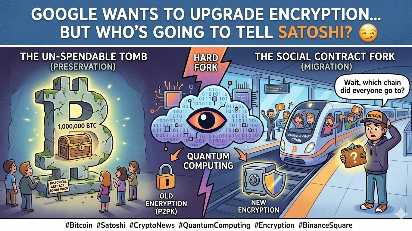 Let’s be real. Satoshi Nakamoto owns roughly 1 million BTC. These coins are sitting in addresses using the old, original encryption standards (Pay-to-Public-Key, or P2PK). If we eventually need to hard fork the network to upgrade the cryptographic algorithms to resist quantum computing, what happens to that bag?