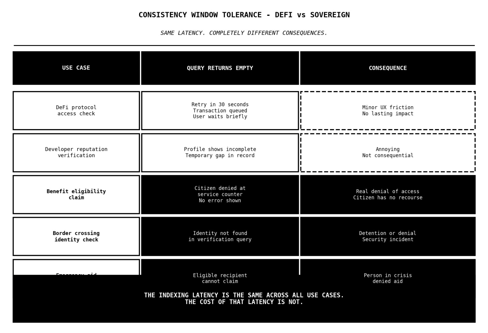 A government issues an eligibility attestation to a citizen on chain A. The citizen immediately goes to a service provider. The provider queries SignScan… but the attestation hasn’t been indexed yet. The result comes back empty. The citizen gets denied.