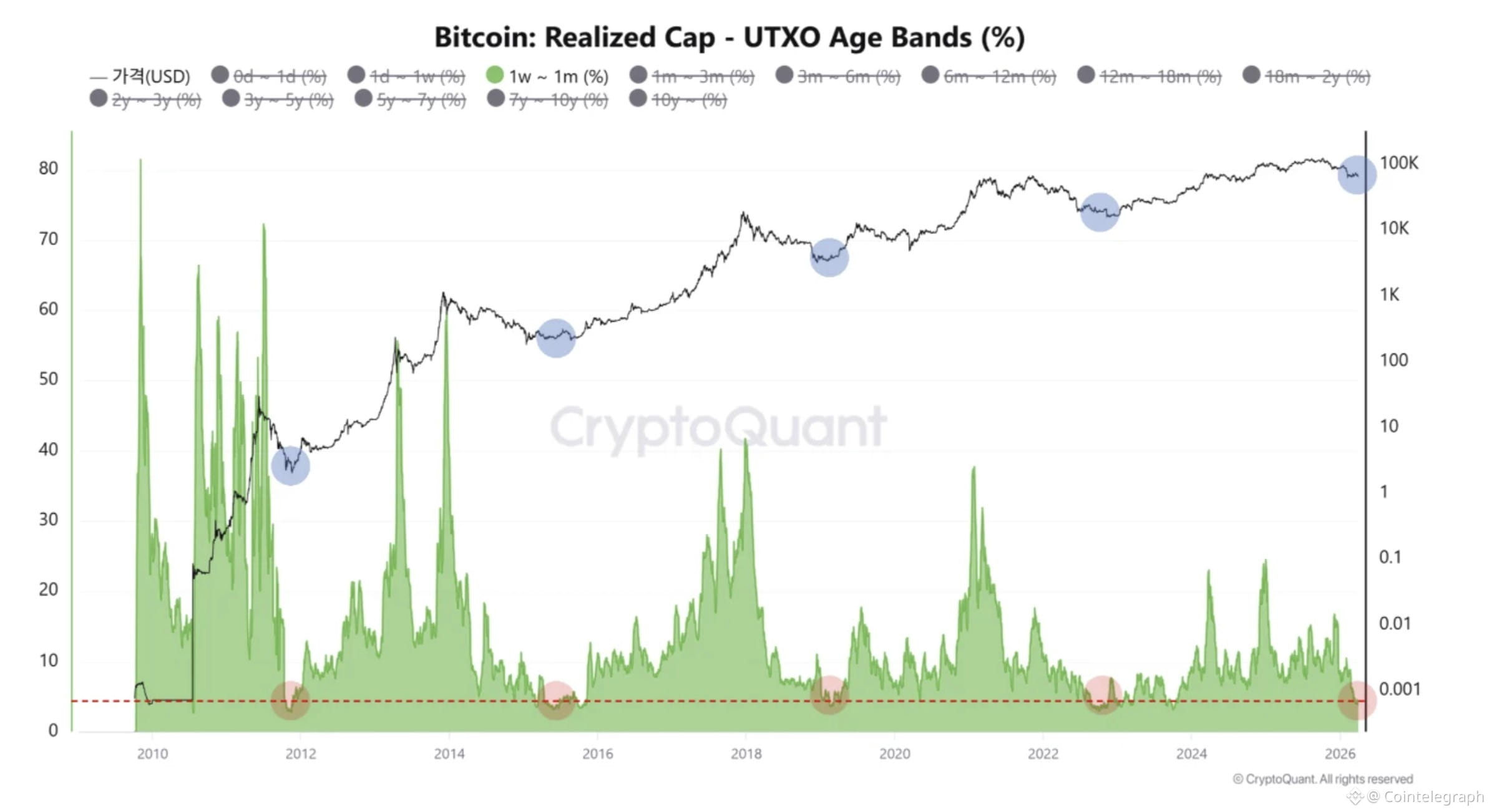 Cap realizzato di Bitcoin: bande di età UTXO. Fonte: CryptoQuant