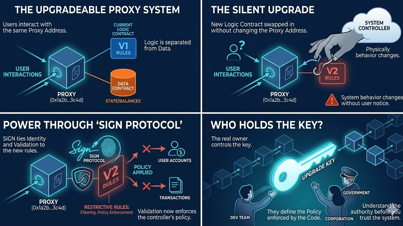 At the heart of this is the idea of protocols like SIGN combined with upgradeable proxy patterns. What that really means is simple: