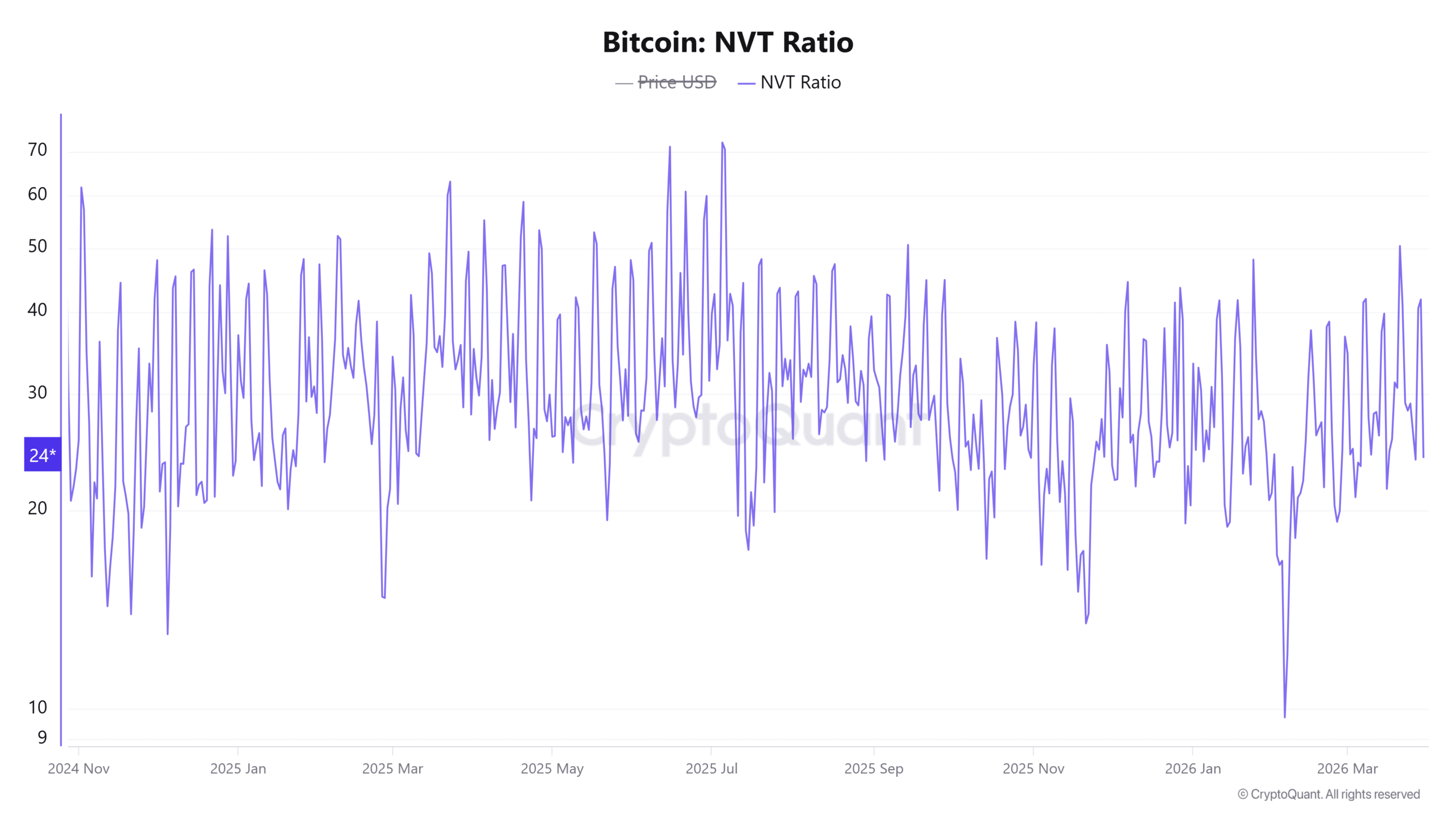 NVT下降,说明当前网络的使用活跃度在提升,而价格相对来说并没有虚高。这通常被认为是一个偏健康的信号。