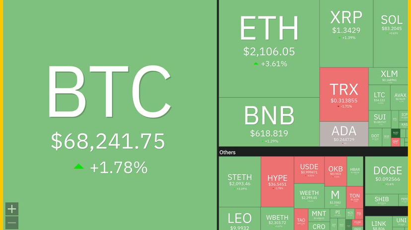 Chứng khoán Mỹ bùng nổ, tăng thêm $1,75T vốn hóa. Vàng tiếp tục tiến lên trên $4.700/oz. Crypto cũng xanh ngát, BTC vượt $68K. Chuyện gì đang xảy ra?