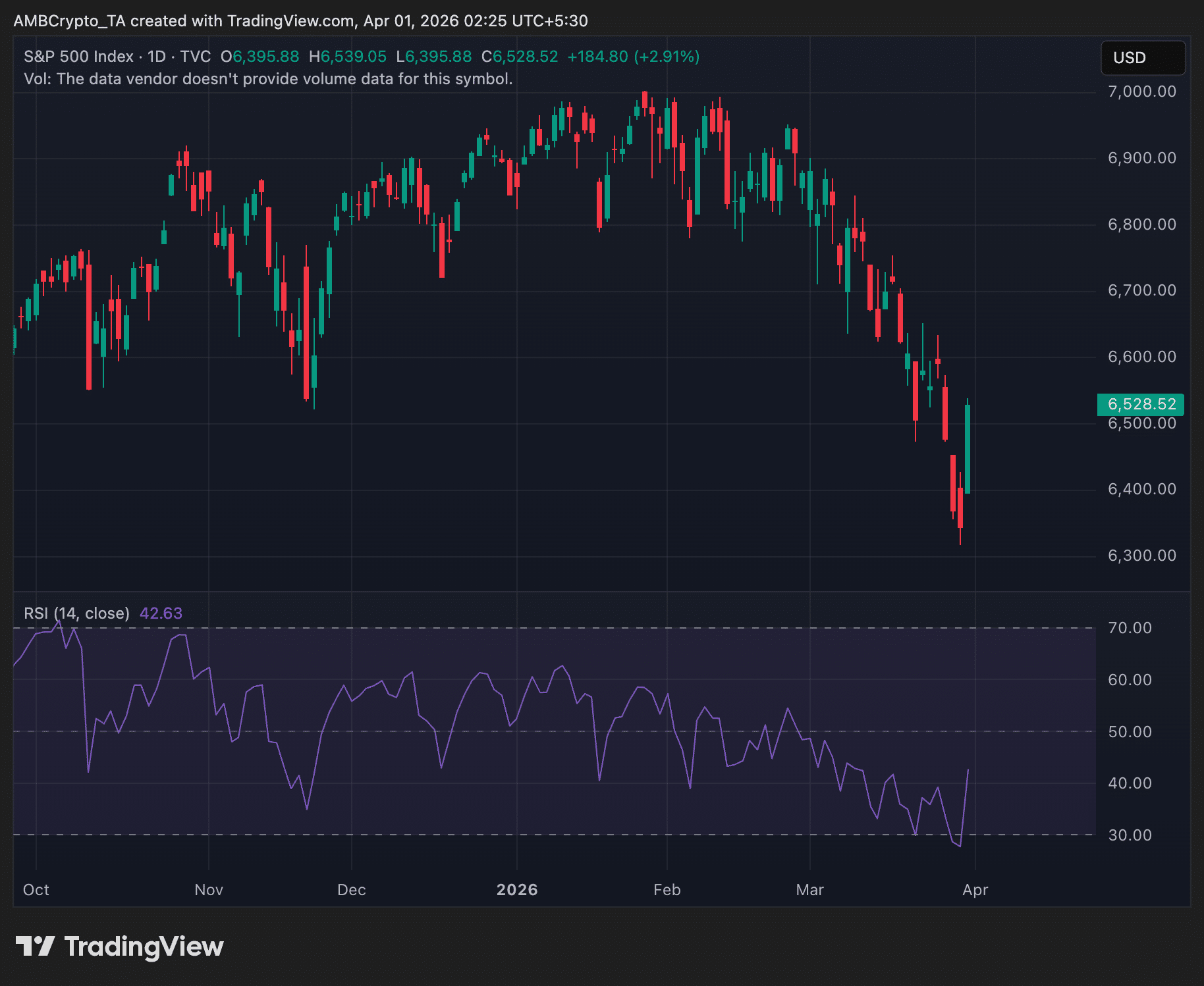 标普500指数近期的走势显示,其上涨动能正在放缓。自2月下旬以来,市场不断出现更低的高点和更低的低点,反映出投资者的风险偏好正在下降。虽然回调尚未演变成无序下跌,但动量指标(如#RSI )从超买状态回落至中性水平,显示股市正在经历一次可控的调整。