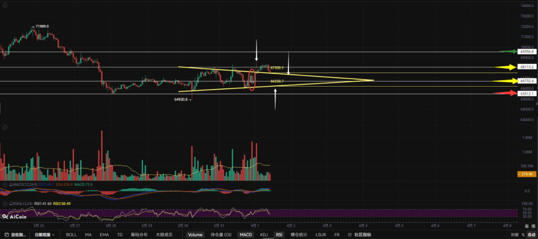 67450美元下方做多具备较好盈亏比,68000美元上方不再追多,直至72000美元有效突破后再重新评估多单机会
