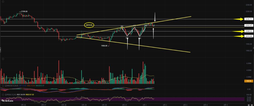 以太坊反弹动能明显不足,周线级别已形成死叉结构。底部整理时间尚不充分,短期大幅反弹并重回上升趋势的概率较低。在大级别下跌趋势背景下,反弹均视为高空机会。