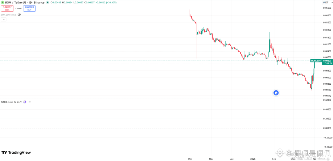 NOM刚刚缩量上涨,目前日线已经到120日均线阻力了,是见顶的第一信号,不过这种山寨还是要看背后庄实力的,可能是因为抛压减少而缩量。