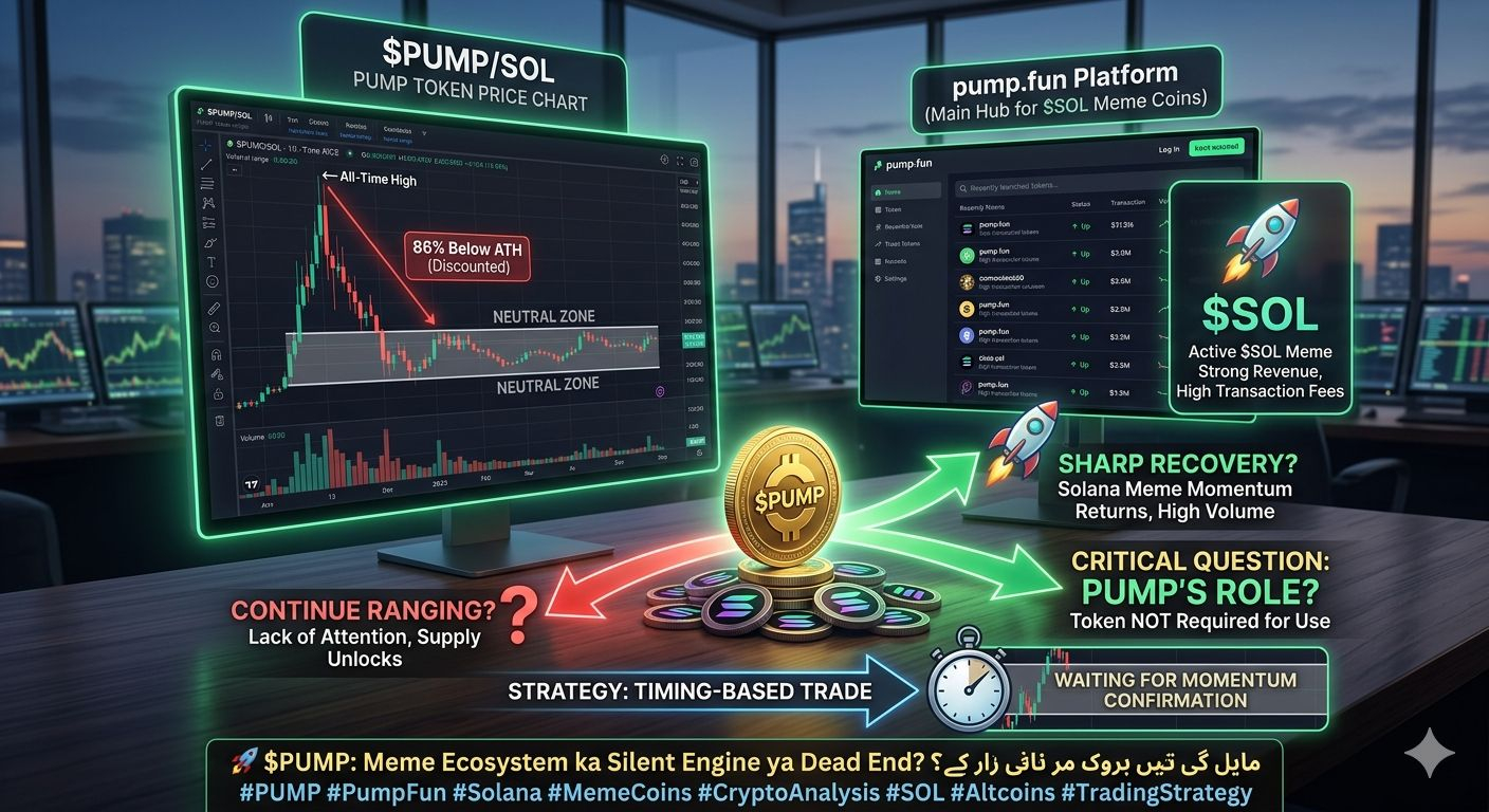 Technical point of view se dekha jaye to $PUMP is waqt apne All-Time High (ATH) se taqreeban 86% discounted price par trade kar raha hai. Halanke ecosystem mein volume active hai aur log memes mein interest le rahe hain, magar $PUMP ki price filhaal ek neutral range mein phansi hui hai.