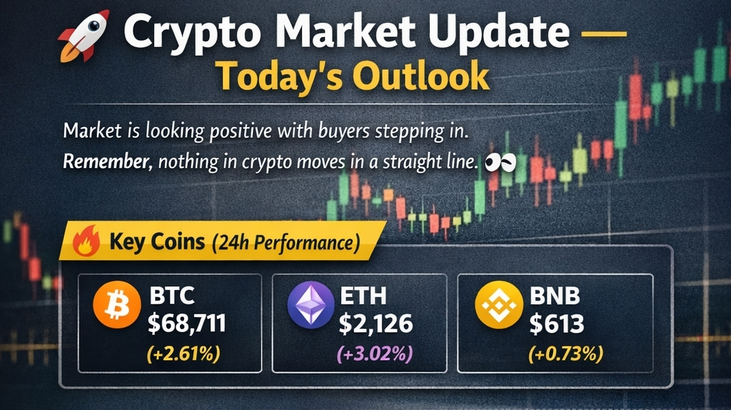• BTC → $68,711 (+2.61%)