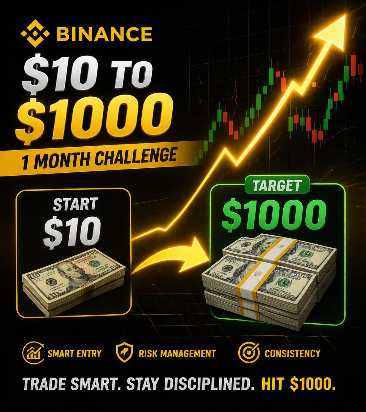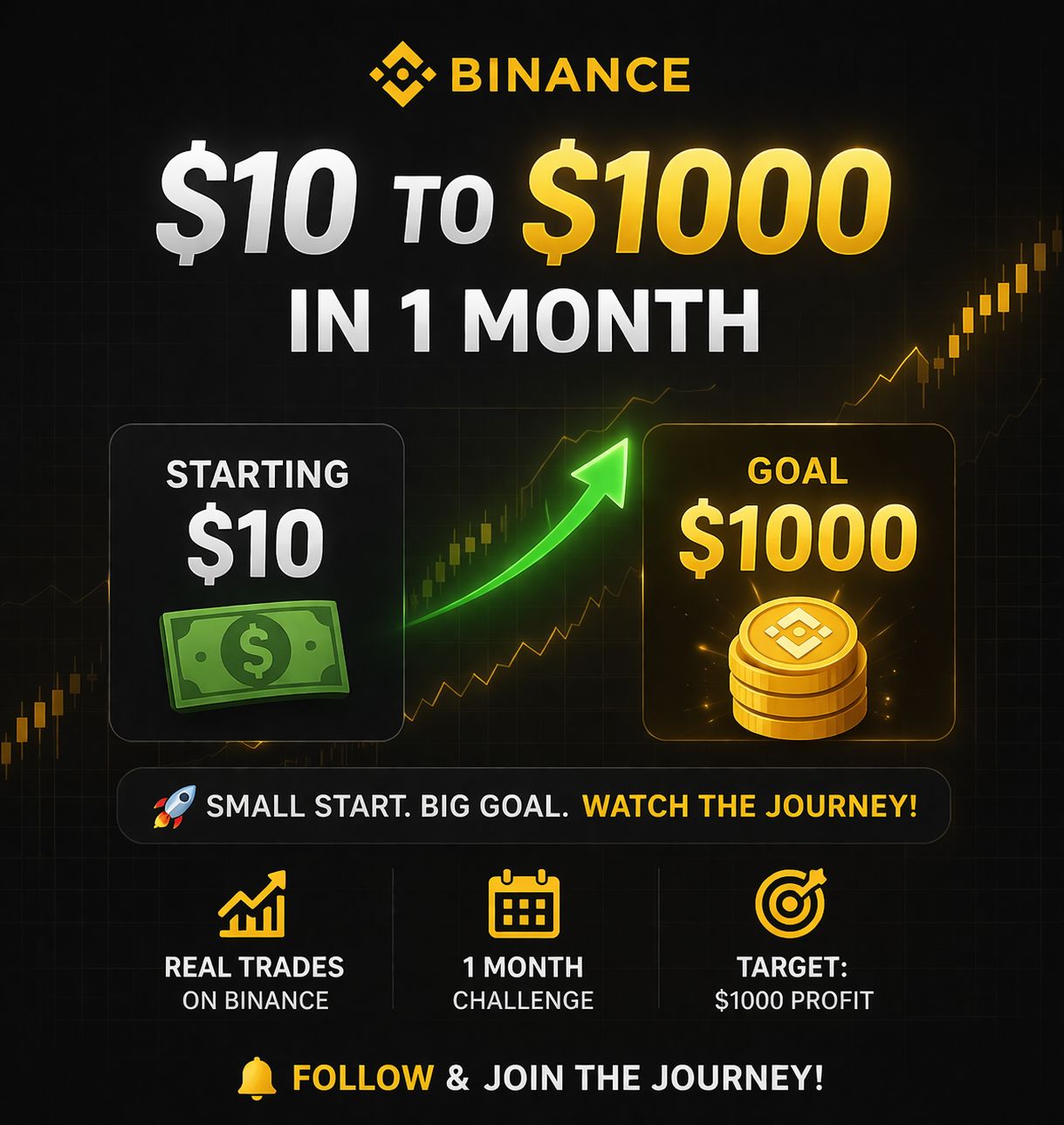 Turning a small amount into something big always sounds exciting—but it also requires strategy, patience, and discipline. I’m starting a challenge on Binance to grow $10 into $1000 within 1 month, and I’m inviting you to follow this journey step by step.