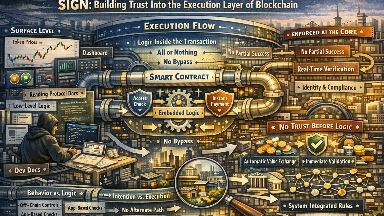 Most people approach blockchain by looking at what’s visible first—dashboards, tokens, price charts—but that’s only the surface. The real story usually sits a layer deeper, inside how things actually execute. I ran into this again while reading through more technical protocol docs, the kind developers use when they want control rather than convenience. It brought back a simple idea from general software systems: you can inject logic into a process without rebuilding everything, and the process only continues if certain conditions are met. Once you notice that pattern, you start seeing it everywhere. Not because it’s trendy, but because it solves something real—how to maintain control without breaking the system apart.