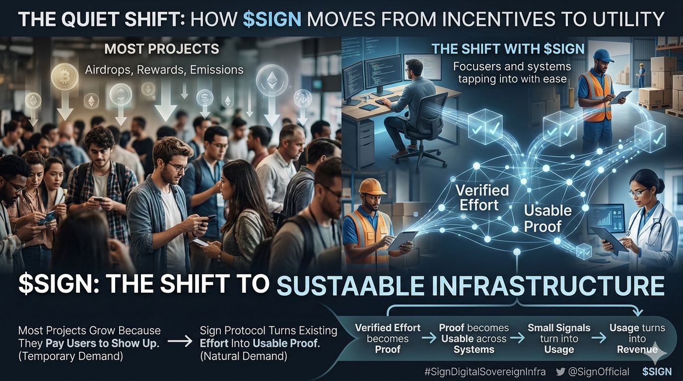 What I’m noticing is that it doesn’t depend on rewards to create activity. Instead, it leans on something more natural effort that already exists. People are already working, contributing, verifying things in the real world. $SIGN just turns that effort into something usable.