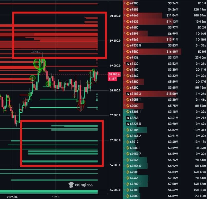 Bitcoin Recently Reached $69,000, Triggering Significant Liquidations In Short Positions Estimated Around $320M.
