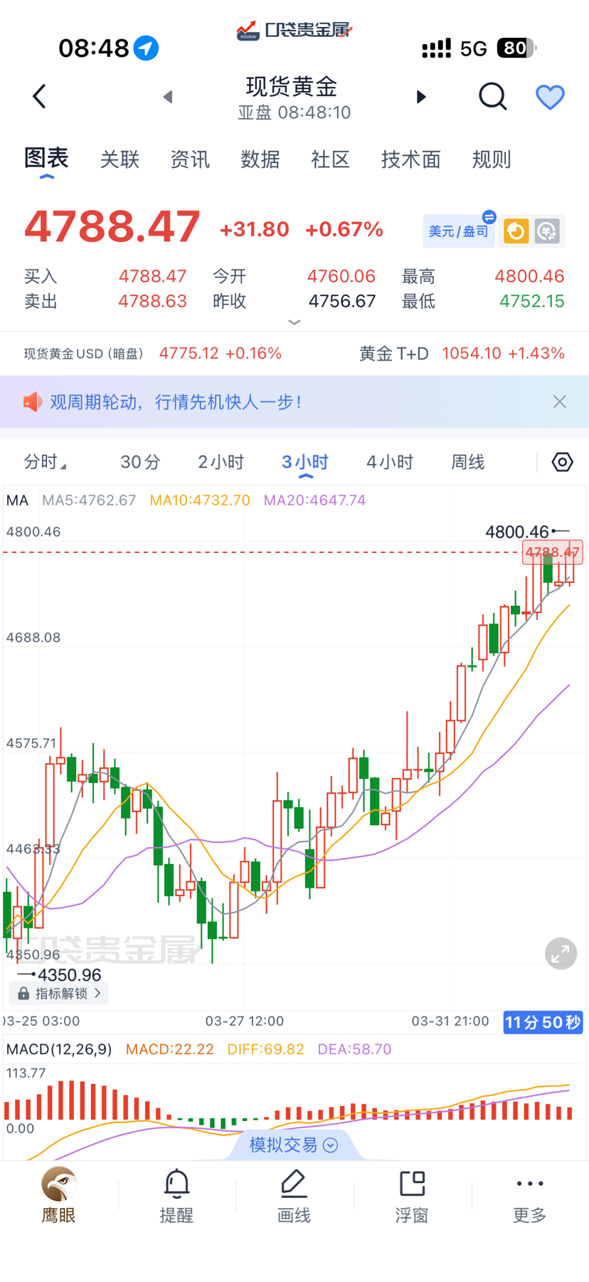 核心支撑聚焦4740—4760区间,此区域是短周期均线支撑位与前期震荡平台低位的共振支撑带,也是多头回踩蓄力的关键点位,回踩至此将迎来强劲买盘承接。