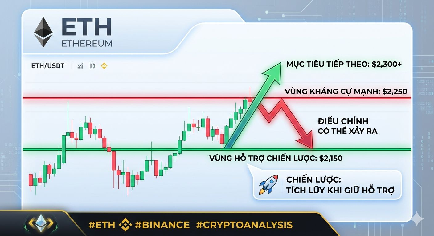 👉ETH (ETH/USDT) đang giao dịch quanh mức $2,180 - $2,200 sau một đợt tăng giá ngắn. Hiện đang có sự điều chỉnh nhẹ (~-1.5% - 2%)