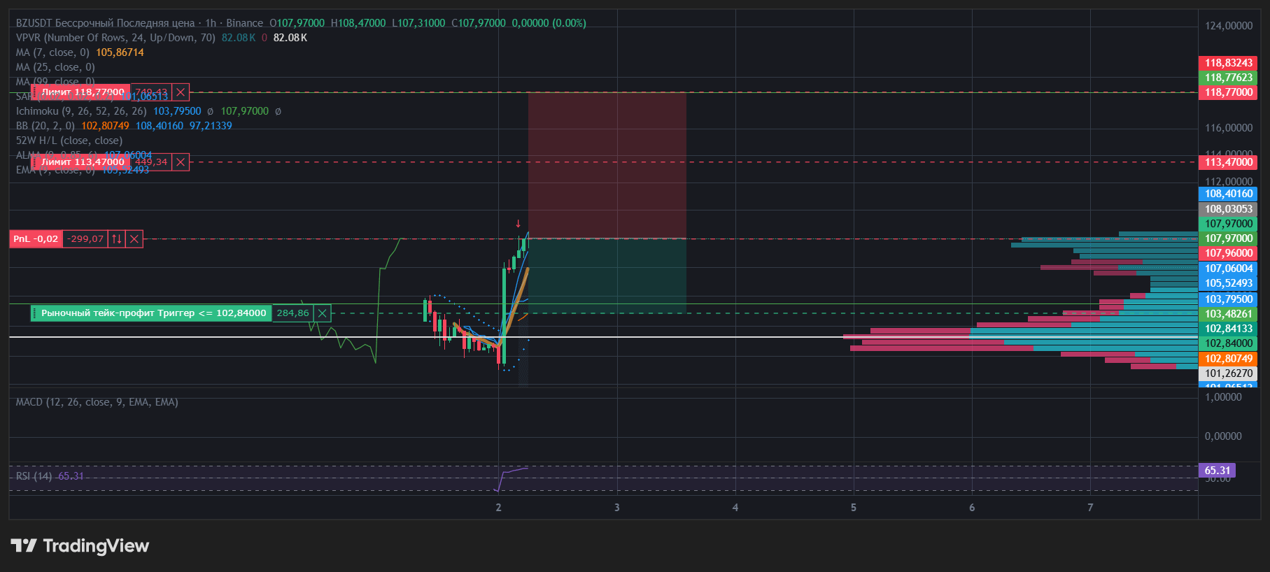 Третий ордер (50%): Мощный заслон на $118.77. Это зона «красного неба», выше которой нефть в текущих реалиях не пустят.