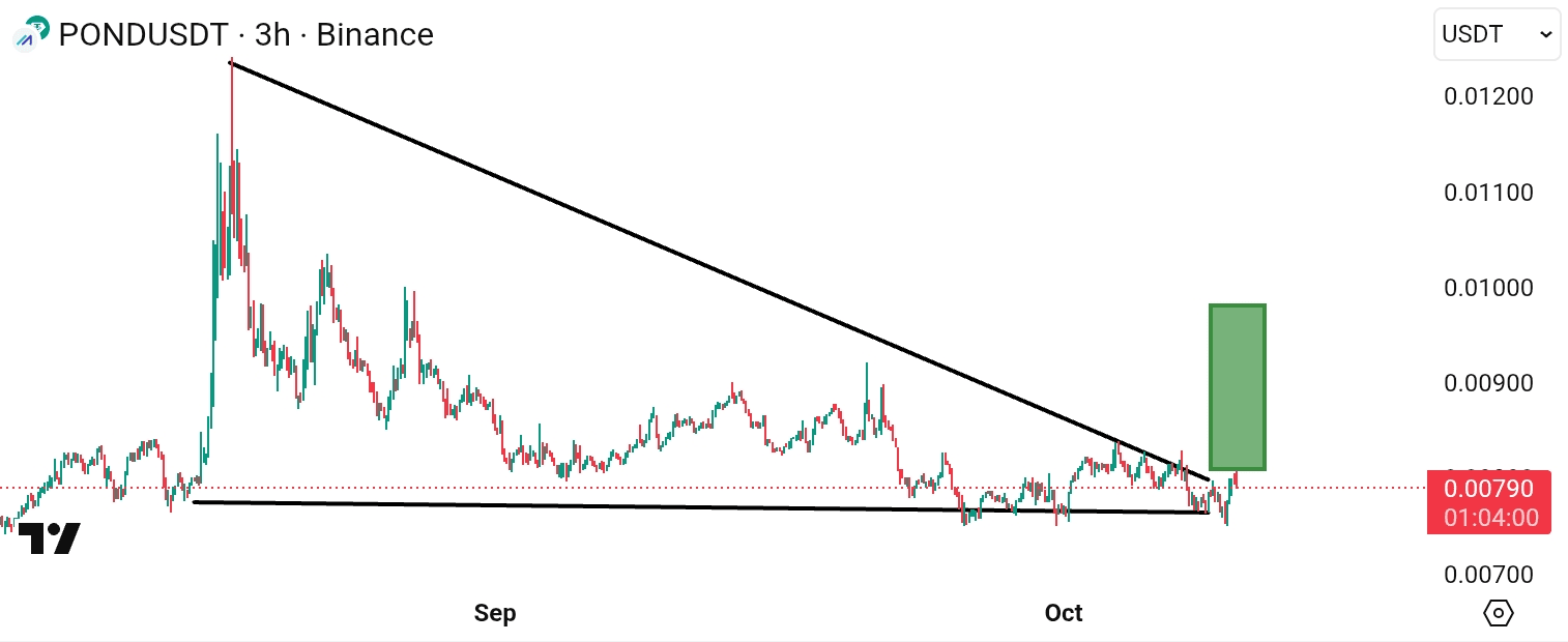 Attualmente, POND sta negoziando intorno a $0.0078โ$0.0080, con un forte supporto a $0.0075 che tiene fermo. Un breakout pulito sopra $0.0082โ$0.0085 potrebbe innescare un forte movimento di inversione rialzista ๐.