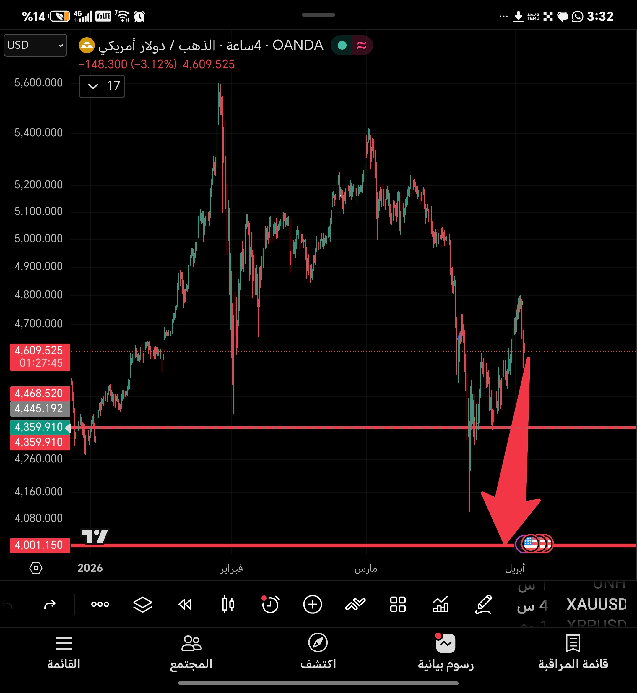 📍 Primo supporto: 4,359.910 (quasi certo)
