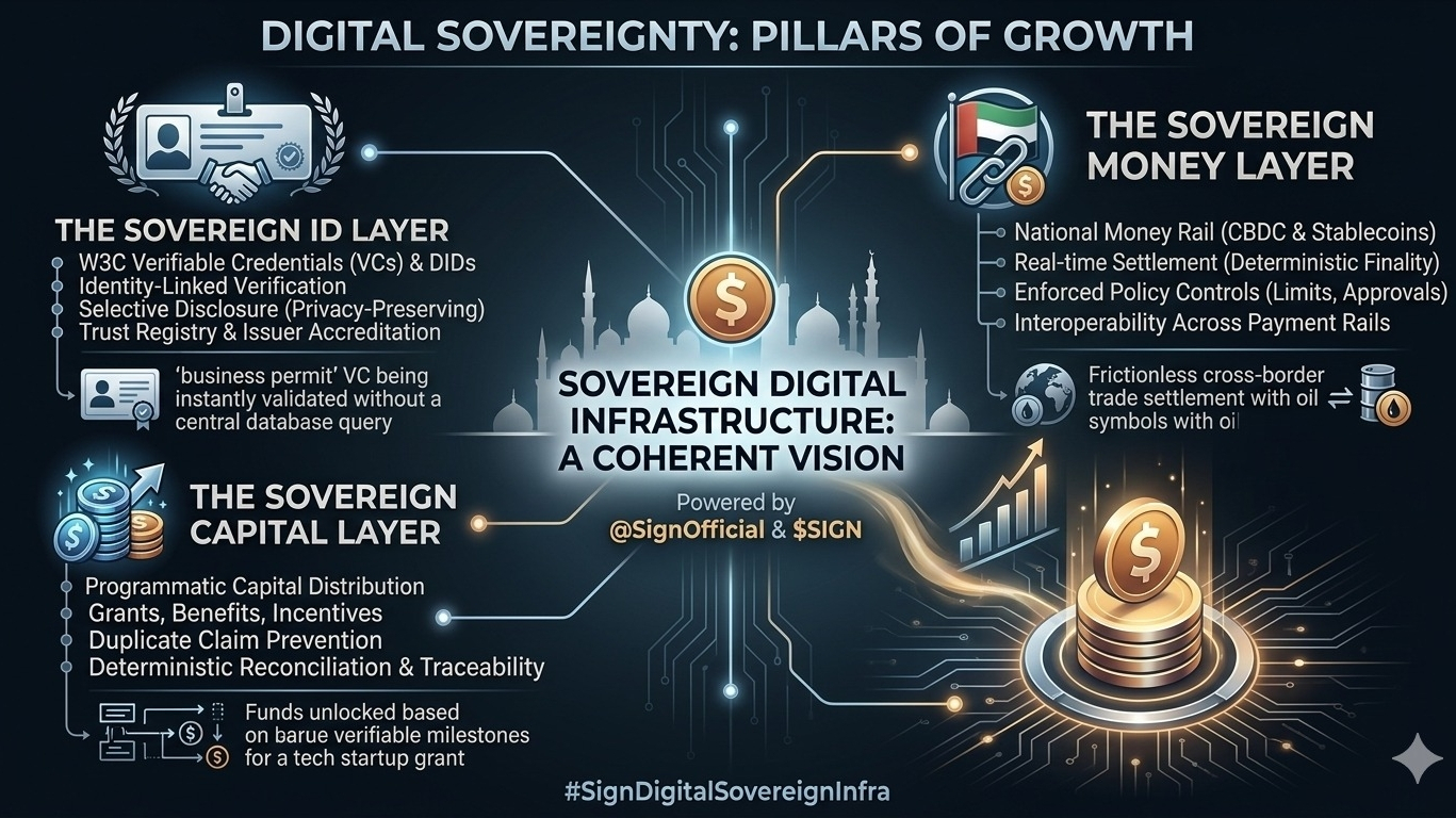 Economic growth and preparing for the future in regions like the Middle East require robust, trustworthy digital infrastructure. @SignOfficial is setting itself up as the foundation for this change by using $SIGN to create a complete “digital sovereign infrastructure.” This vision involves not just single products, but a unified approach to Money, Identity, and Capital.