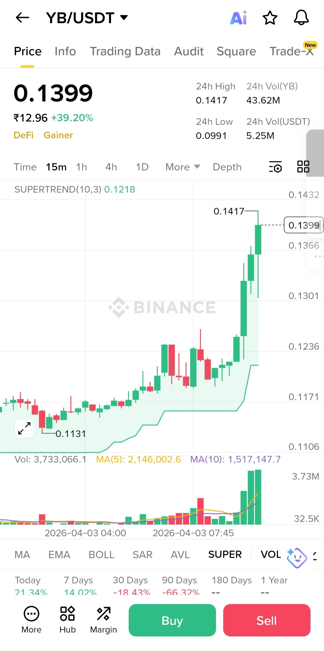 Mean Reversion 📉: The price is trading significantly higher than the SuperTrend support ($0.1218). Expect a pull-back to retest the base.