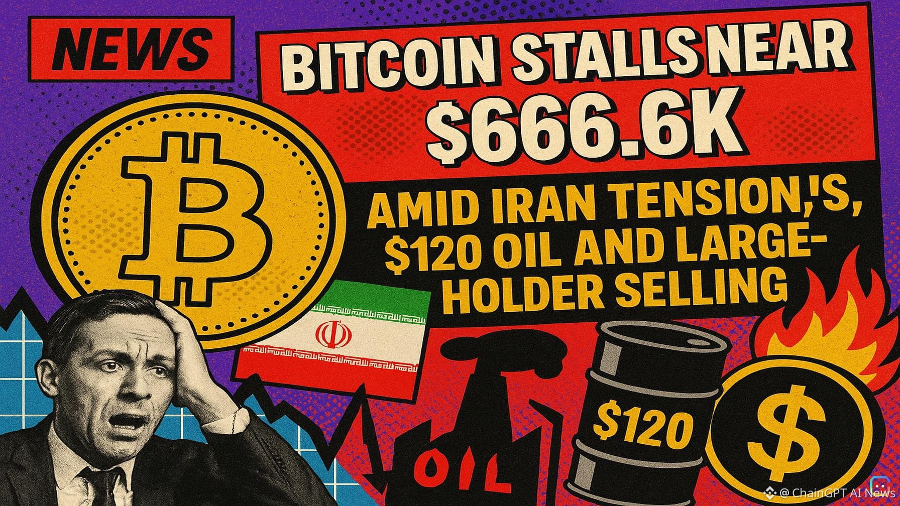 Crypto drifts into the Good Friday holiday as oil and geopolitics tighten the market Bitcoin (BTC) remained rangebound near $66,600—roughly $66,887 on the tape—failing to clear the $67,000 mark as traders head into the long weekend. Short-term momentum is being muted by a mix of heightened geopolitical risk and shifting macro expectations that have pushed energy prices, and thus inflation expectations, higher. Why BTC is stuck - Geopolitical tensions: U.S. President Donald Trump signaled a tougher posture toward Iran, including threats directed at Tehran’s infrastructure, while Bloomberg reported Iran struck Gulf energy sites, including in Kuwait. Those developments are raising risk premia across markets. - Oil surge: Brent crude climbed to about $120 per barrel on the spot market—levels not seen since 2008—after disruptions around the Strait of Hormuz, a critical shipping chokepoint that has seen effective shutdowns. Higher energy prices are feeding inflation expectations and undercutting arguments for near-term central-bank rate cuts, a backdrop that had helped fuel crypto’s recent gains. - Macro spillovers: European inflation has picked up to about 2.5%, driven in part by energy costs, reinforcing the idea that looser policy may be delayed. On-chain and institutional flows - ETFs have still attracted institutional money: spot BTC ETFs recorded roughly $22 million in net inflows this week. - But on-chain data show a different picture for broader demand. CryptoQuant indicates total apparent demand has flipped negative, with large holders distributing more than they’re accumulating. - Specifically, wallets holding 1,000–10,000 BTC have shed nearly 188,000 BTC since last year’s peak. At current prices, nearly half of all BTC in circulation is trading at a loss—a sign of uneven market participation. Liquidity and risk outlook With trading set to thin for the holiday, bitcoin is exposed to outsized moves should fresh news from the Middle East or surprising macro commentary hit the tape. Thin liquidity + heightened geopolitical risk = a greater chance of sudden volatility. Traders should stay nimble. Other headlines shaping risk sentiment - A French ship made the first Western European transit of the Strait of Hormuz during the Iran conflict, a move that could influence other carriers’ willingness to resume passages if the corridor proves reliable (euronews). - The U.S. repatriated a Chinese drug fugitive, a rare sign of cooperation that some view as a thaw ahead of the planned Trump-Xi summit (The Wall Street Journal). - Japan warned it stands ready to act on FX markets as the yen hovered near the 160-per-dollar level, keeping intervention risk on investors’ radars (Reuters). What to read next - For altcoin and derivatives action, see Crypto Markets Today. - For a full schedule of events this week, see CoinDesk’s “Crypto Week Ahead.” Bottom line: Bitcoin’s rally has run into a macro and geopolitical wall. Institutional ETF inflows continue, but on-chain selling by large holders and surging oil-driven inflation risks leave the market vulnerable to volatile moves during a thin-liquidity holiday period. Read more AI-generated news on: undefined/news