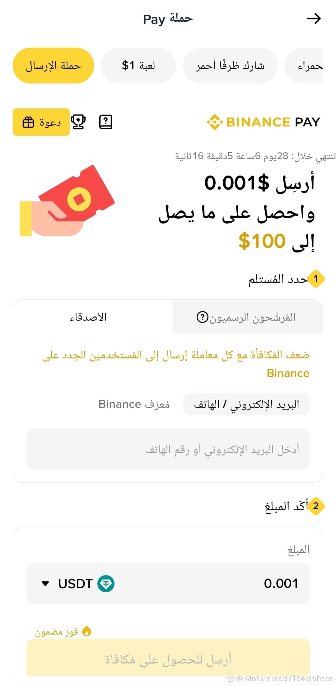 اكتب معرف Binance في الخانة المخصصة
