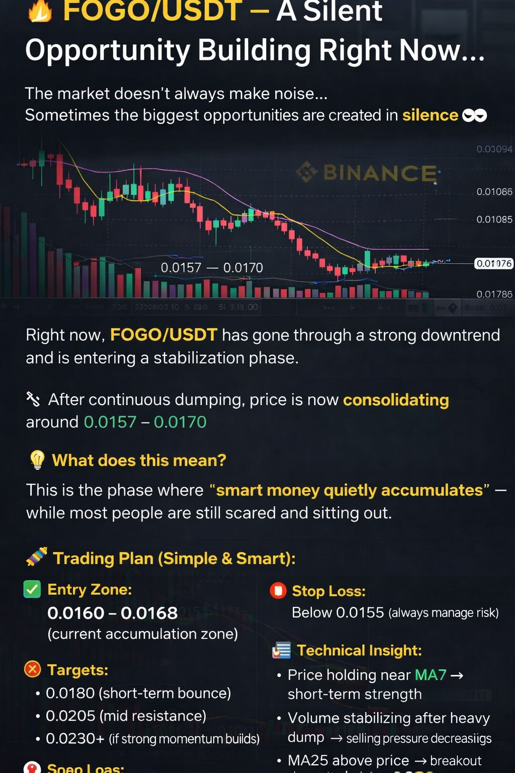 Right now, FOGO/USDT has gone through a strong downtrend and is entering a stabilization phase.