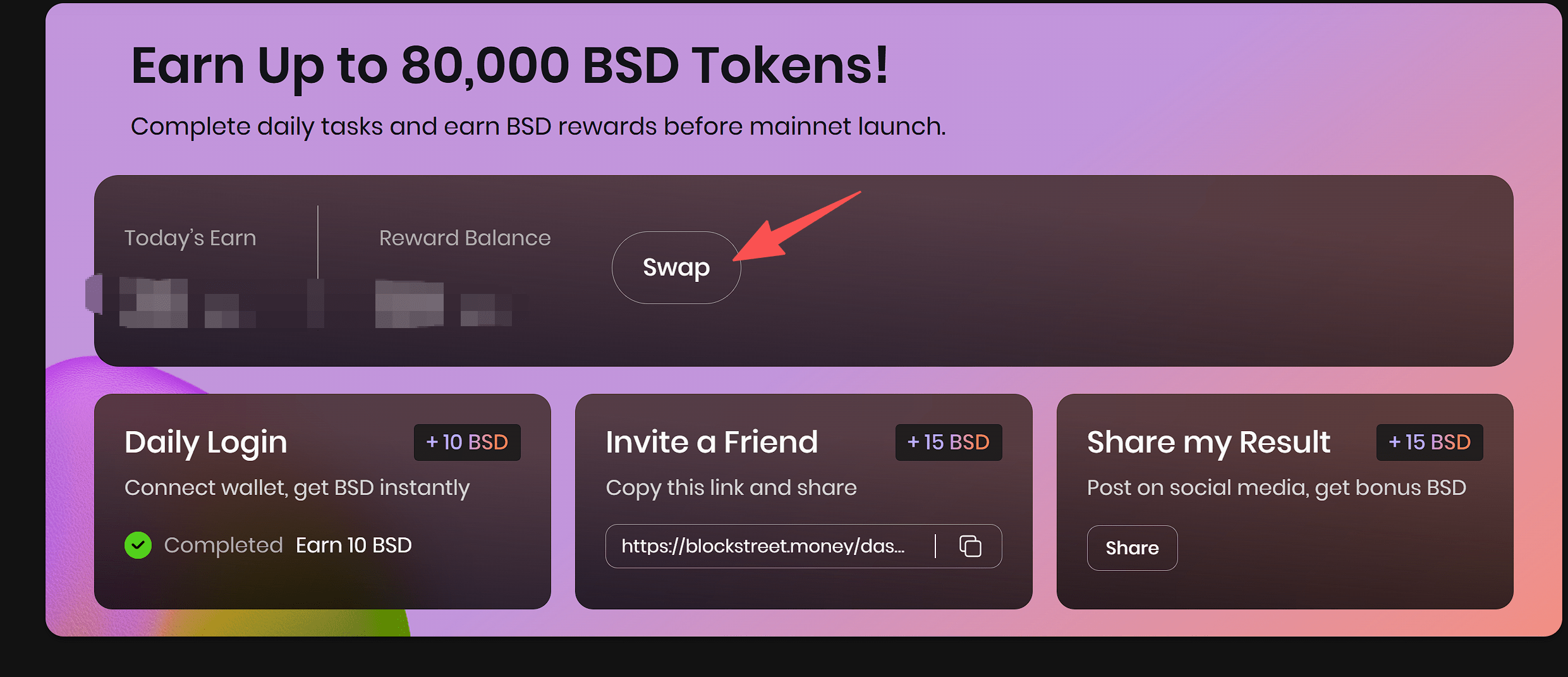 3. Dopo aver ottenuto 25 punti ogni giorno, clicca su SWAP per convertire i punti in azioni