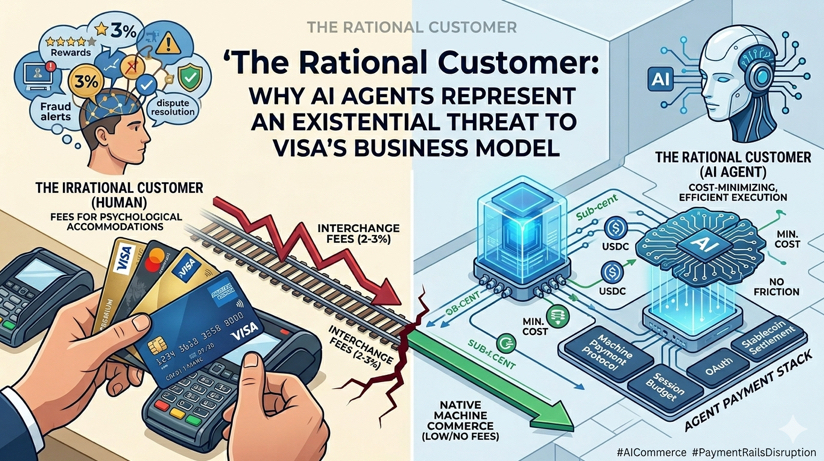 The 2–3% interchange fee is not a technical necessity. It is a behavioral tax on human irrationality. And irrationality is not a feature agents possess.