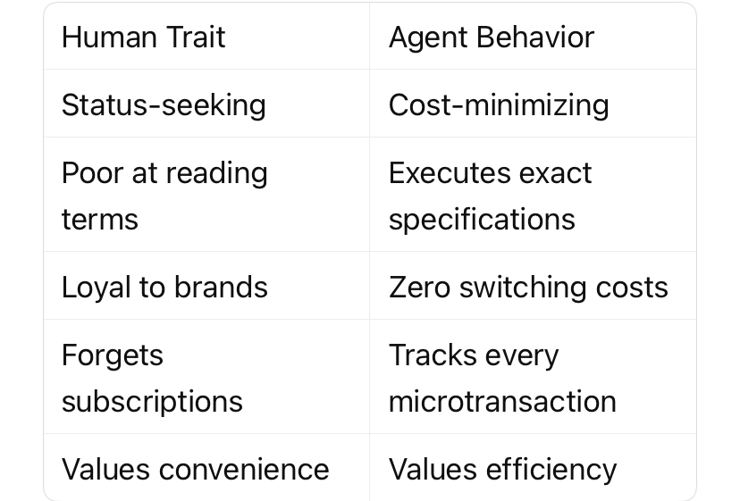 Agents break this loop. They have no wallets, no brand loyalty, no preference for Centurion lounges. When an agent is the buyer: