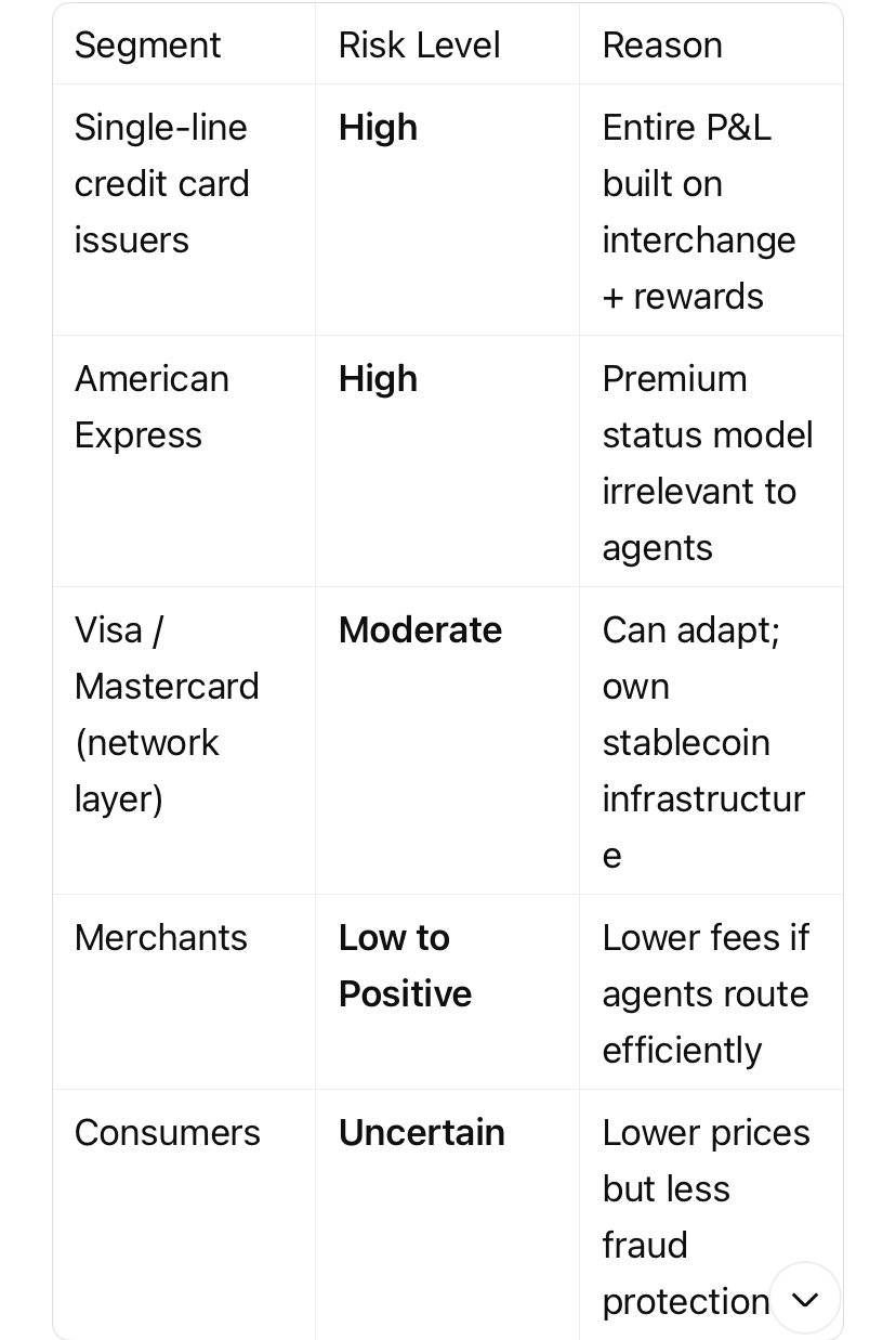 The rewards points arms race is a zero-sum game among humans. Agents do not collect points. If 20% of your transaction volume moves to agent-led stablecoin settlement, your rewards liability drops—but so does your interchange revenue. The net effect depends on your cost structure.