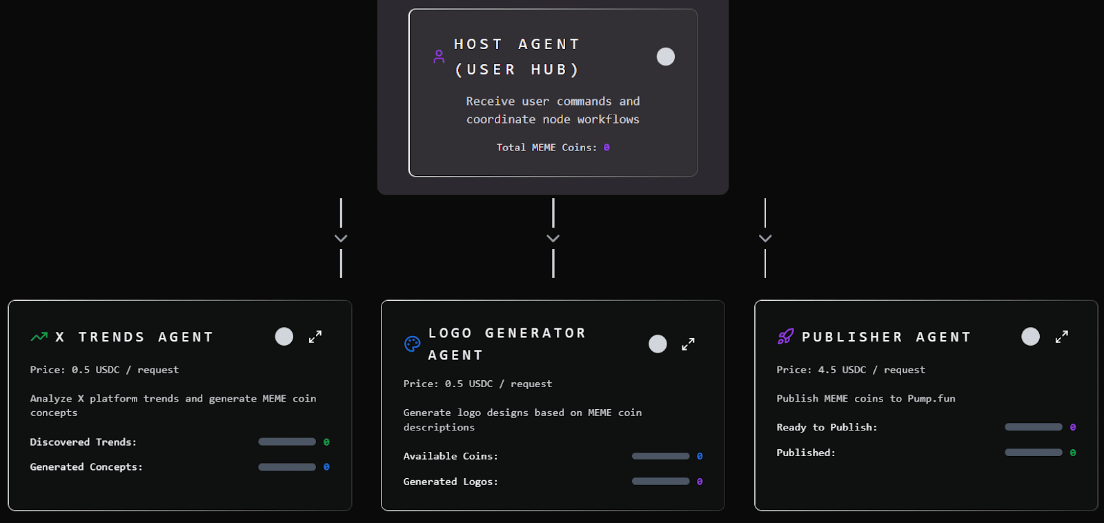 Publisher Agent: distribuisce monete MEME sulla rete Solana (ad esempio tramite Pump.fun) con un clic.