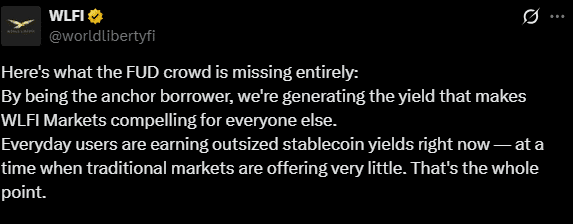 Dự án World Liberty Financial [WLFI] do gia đình Trump hậu thuẫn đã bác bỏ những chỉ trích gần đây về việc vay mượn ồ ạt của mình, coi đó là một loại “FUD sai lầm.”