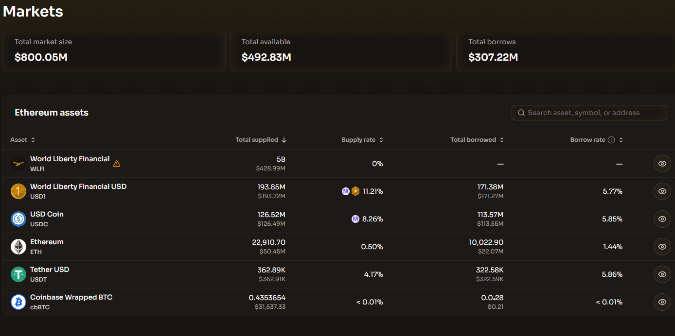 Dựa trên số tài sản thế chấp này, dự án đã vay hơn 75 triệu đô la USDC. Kết quả là gì? Điều này đã đẩy lãi suất cho vay USDC trên WLFI Markets lên mức hấp dẫn 13,5%, nhưng đồng thời cũng làm cạn kiệt nhóm thanh khoản.