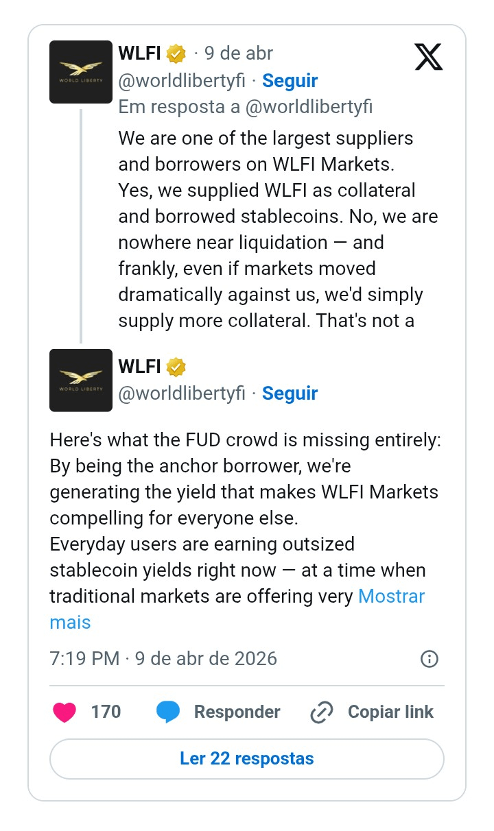 Uai, sô, il popolo ha avuto paura del seguente: se fosse andato male e la piattaforma Dolomite fosse stata costretta a liquidare i prestiti della World Liberty, potrebbe finire con un debito difficile da ripagare, recuperando molto meno di quanto prestato in stablecoin. Ma il progetto legato a Donald Trump ha già provveduto a ribattere a questo.