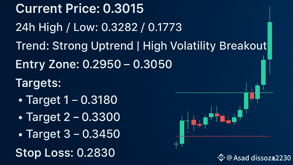 Dopo un rimbalzo da 0.26, si sta consolidando sopra 0.30 — un segno di accumulazione sana prima del prossimo impulso.